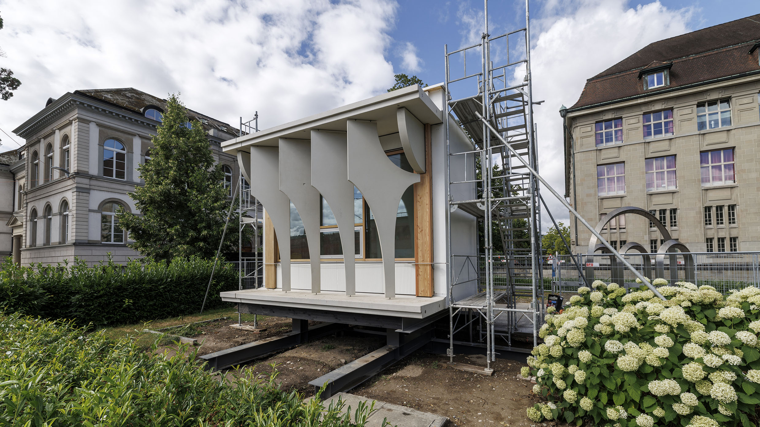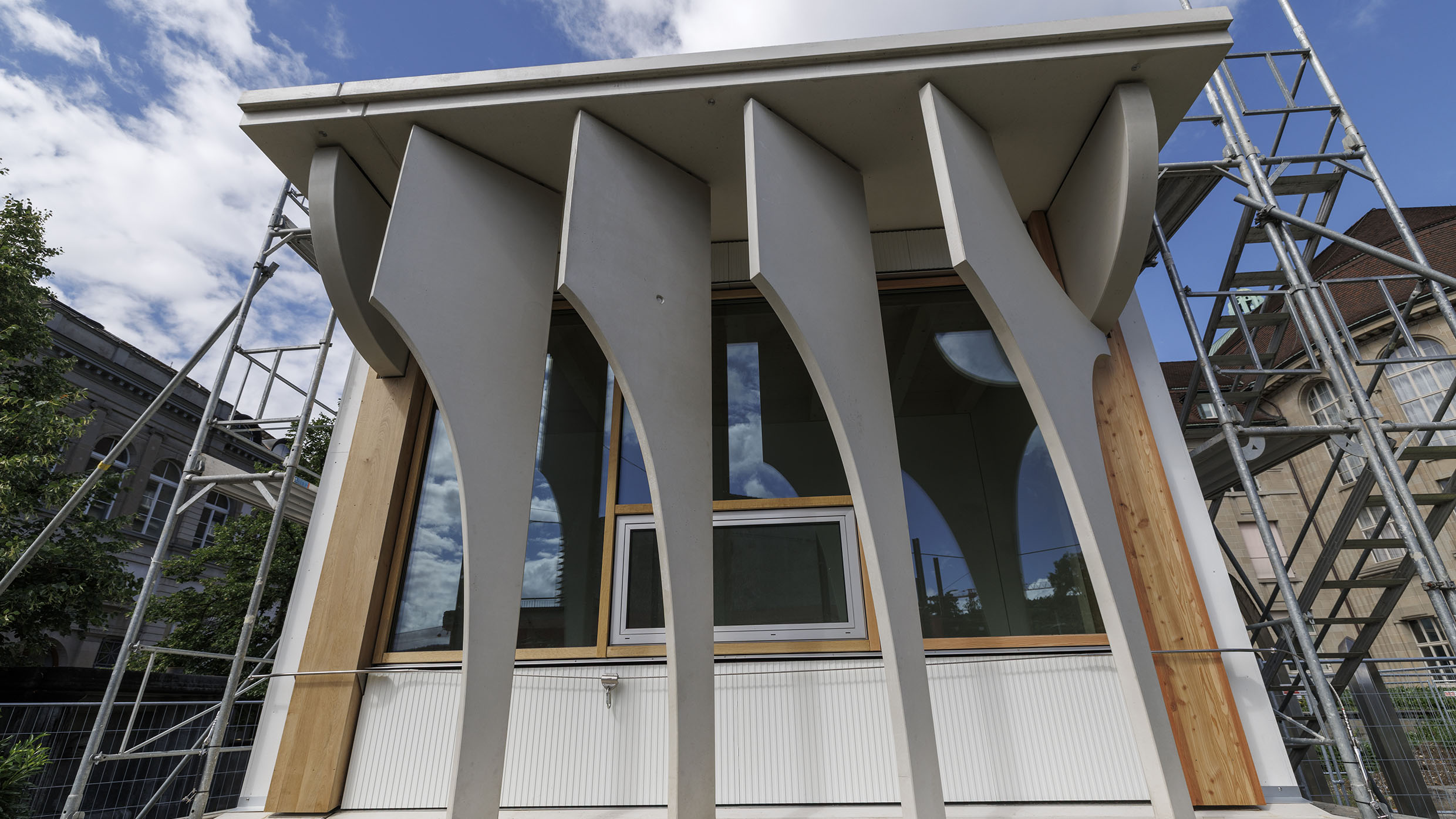 Was auf den ersten Blick wie ein einzelnes Bauteil wirkt, ist in Wirklichkeit ein wirksames Prüfmodell: zur Beurteilung des architektonischen Ausdrucks, dem Einholen von behördlichen Bewilligungen und zur Festlegung von Form und Farbe. Es hilft Architektinnen, Planern, Bauherrschaft und Behörden, das Zusammenspiel von Form und Funktion unter echten Bedingungen zu beurteilen – und dient gleichzeitig als Grundlage für die bevorstehende Ausschreibung der Fassadenarbeiten.