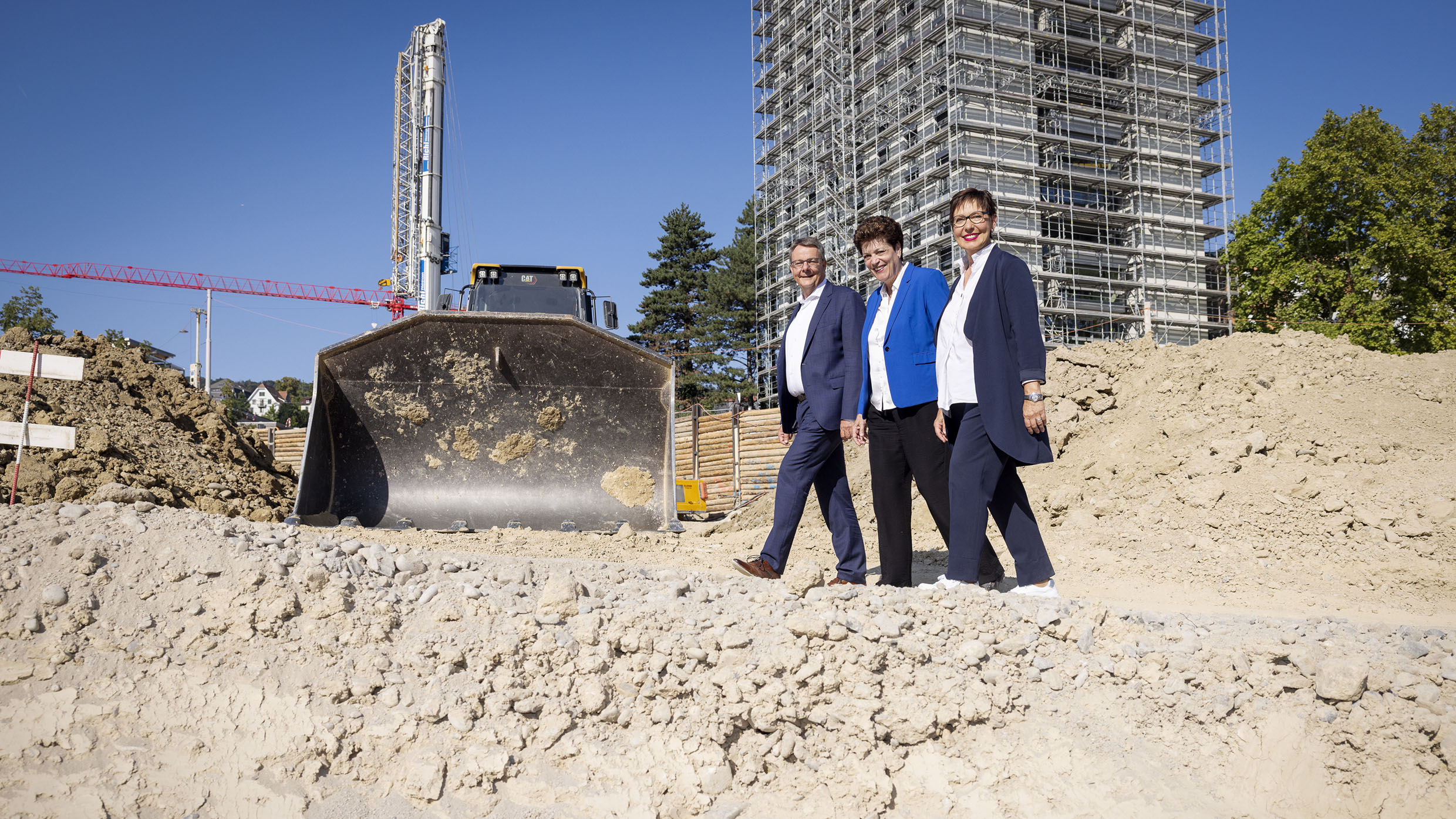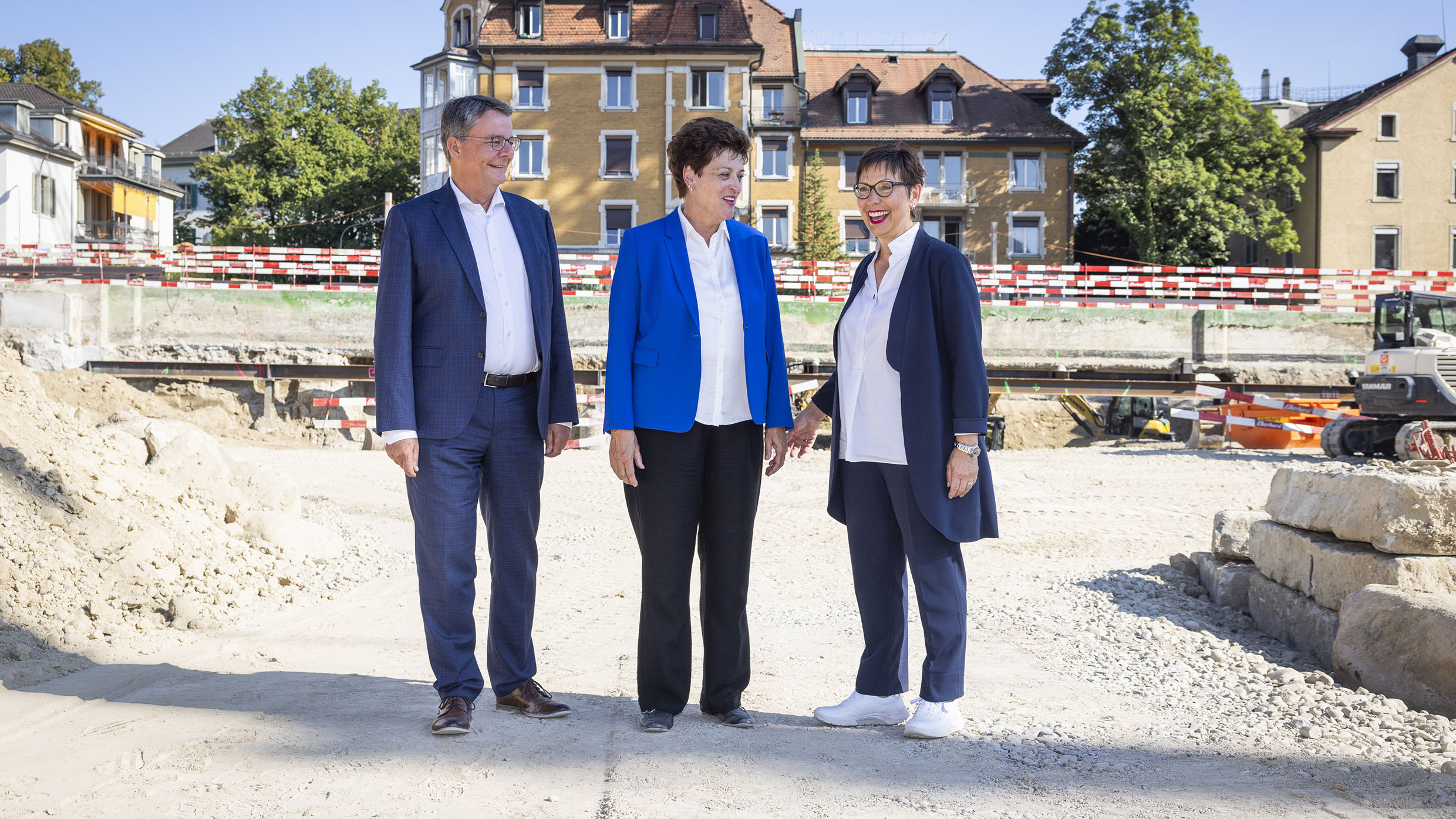 Dr. Silvia Steiner (Präsidentin Universitätsrat und Vorsteherin Bildungsdirektion), Prof. Dr. Gabriele Siegert (Vize-Rektorin und Prorektorin Lehre und Studium) und Prof. Dr. Michael Schaepman (Rektor Universität Zürich) blicken auf das zukünftige FORUM UZH und sprechen über die Bedeutung dieses neuen Begegnungsorts für die Universität, die Stadt und ihre Bevölkerung.